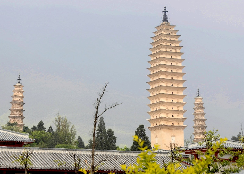 Am zweiten Tag in Dali fahren wir zunächst zu den drei bis zu 69m hohen Pagoden am Stadtrand, deren gelber Marmor am Morgen in der Sonne strahlt. Anschließend setzen wir unsere Erkundung der Altstadt mit einem Bummel durch den Yu’er Park und einem Besuch des Dali Museums, mit einer Vielzahl von Fundstücken aus der Ming Dynastie fort. Zwischendurch erholen wir uns hin wieder in einem der kleinen Cafés westlich der Wenxian Lu. Hier besuchen wir auch die Moschee der Hui-Minderheit, eine insgesamt sehr interessante Anlage.